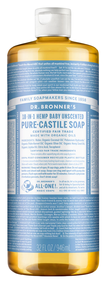 Dr Bronner’s – Liquid Large Baby Unscented 12/32oz/946ml