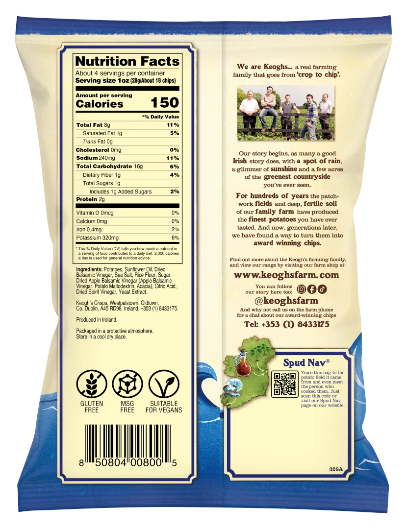 Atlantic Sea Salt Sweet Irish Vinegar Potato Chips 125g /12