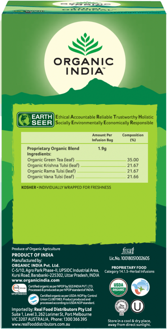 Organic India – Tulsi Green Tea Classic Tea 25 teabags/5