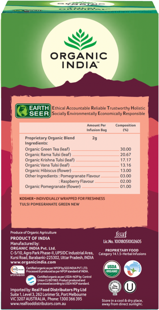 Organic India – Tulsi Pomegranate Green Tea 25 teabags/5