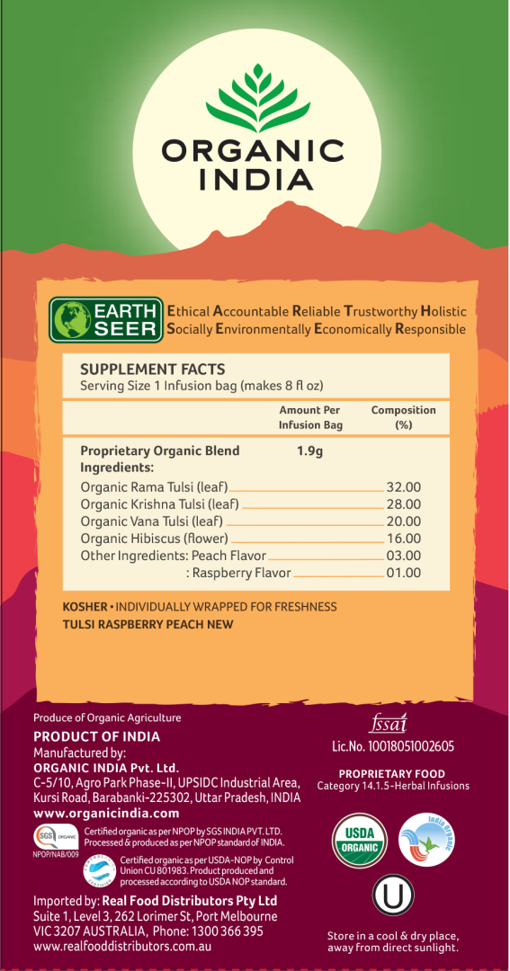 Organic India – Tulsi Raspberry Peach Tea 25 teabags/5