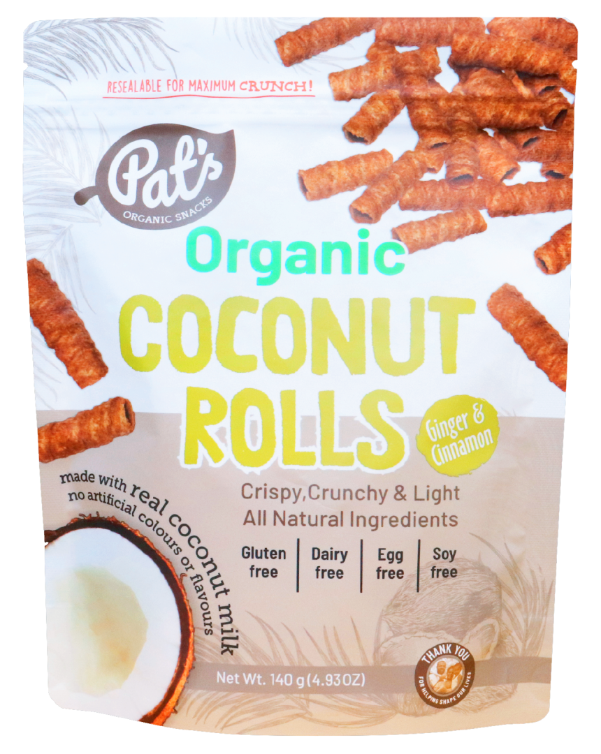Pat’s Organic Coconut Rolls – GINGER & CINN 140g/12
