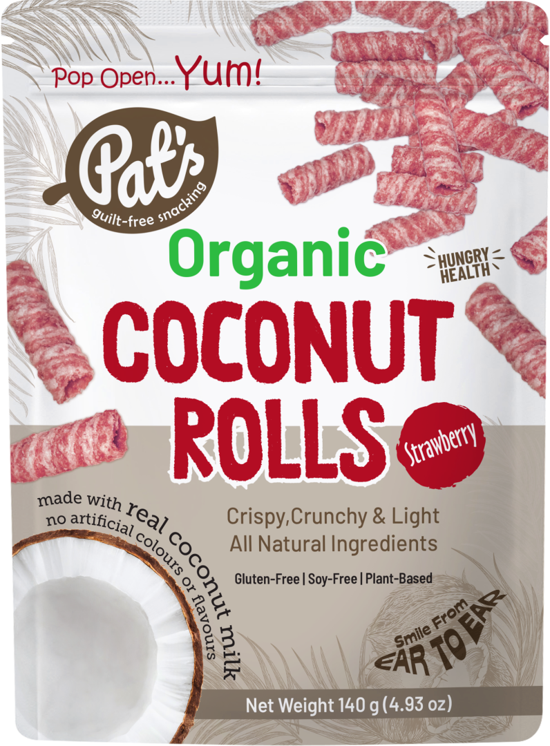Pat’s Organic Coconut Rolls – STRAWBERRY 140g/12