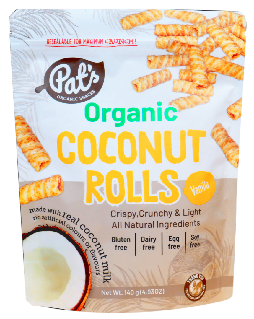 Pat’s Organic Coconut Rolls – VANILLA 140g/12
