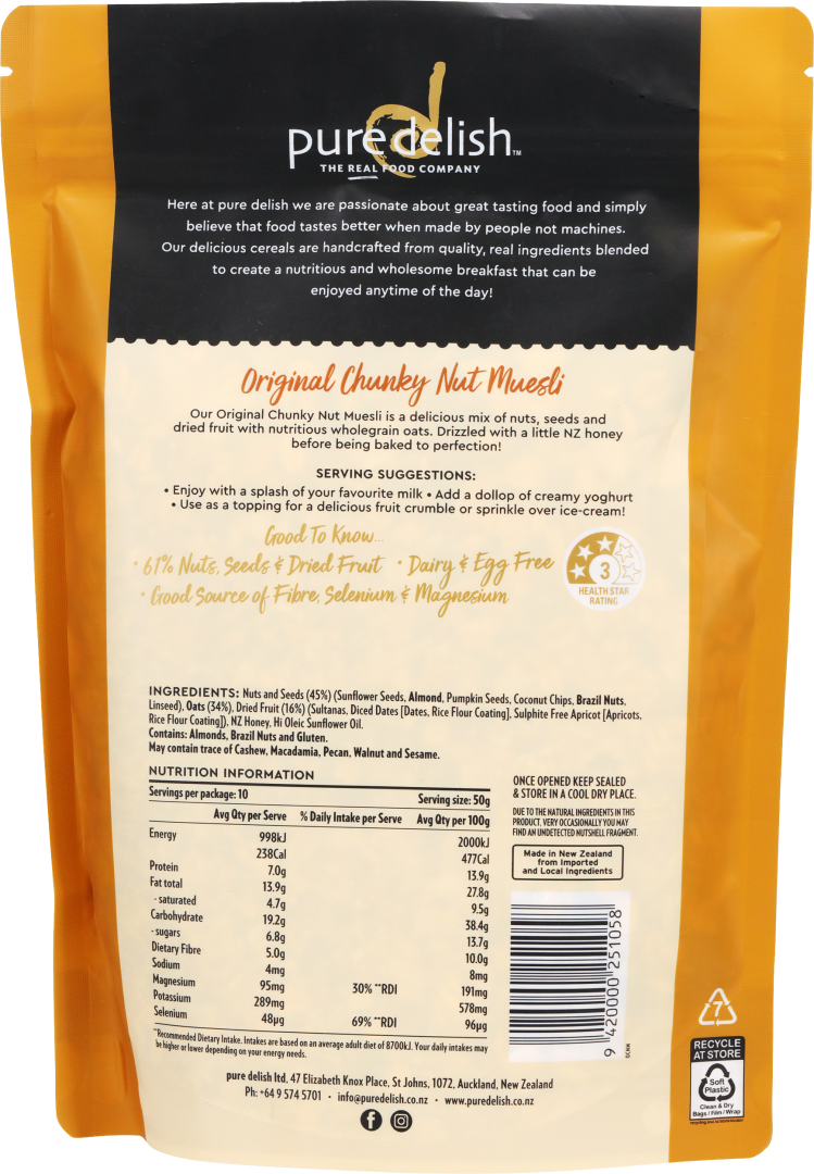 Pure Delish Original Chunky Nut Muesli 500g/12
