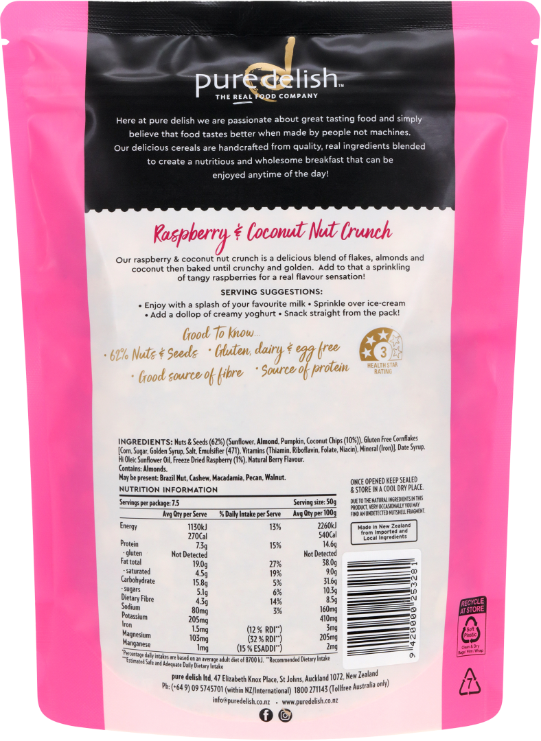 Pure Delish Raspberry & Coconut Nut Crunch 375g