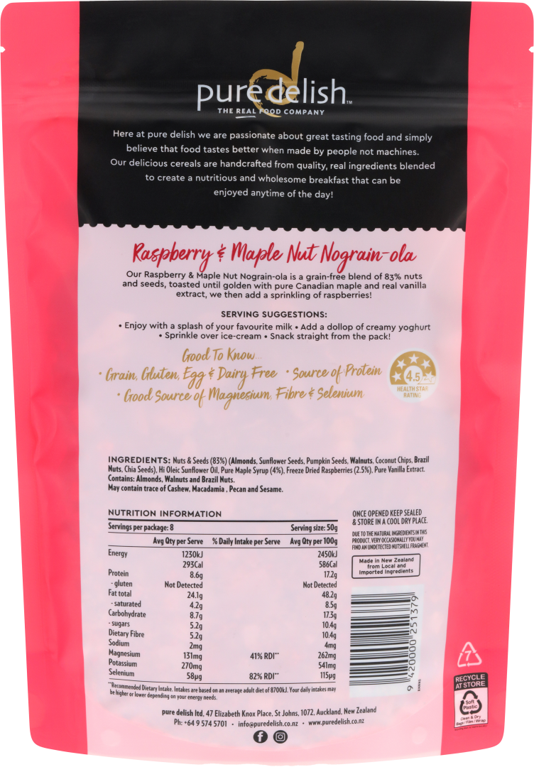 Pure Delish Raspberry & Maple Nut Nograinola 400g/12