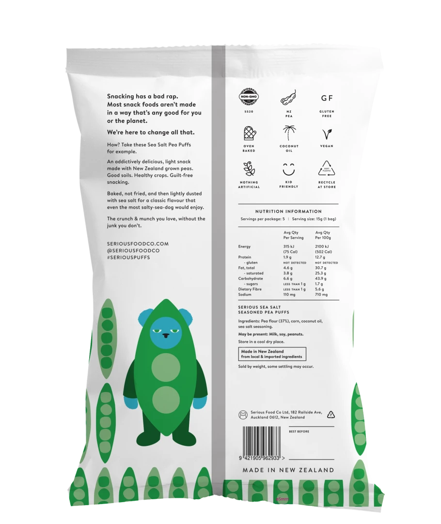 Serious – Non-GMO MULTIPACK Pea Puffs Sea Salt 75g/6