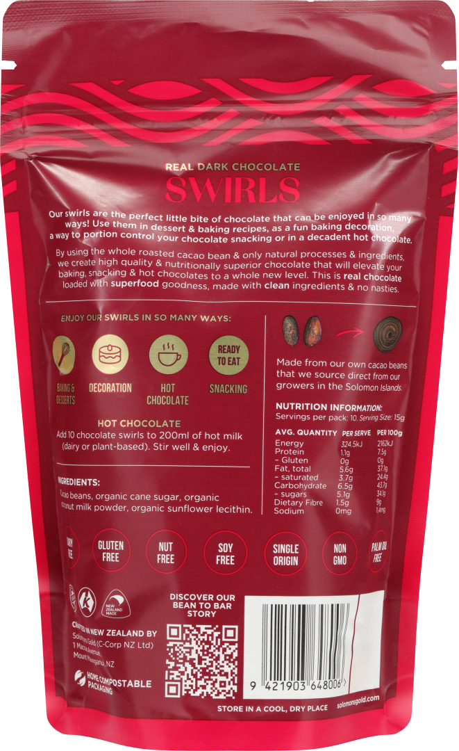 Solomons Gold Dark Chocolate Baking Swirls 58% 150g/8